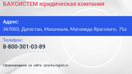 БАУСИСТЕМ, юридическая компания по адресу 367003, Дагестан, Махачкала, Магомеда Ярагского, 71а в дальнейшем Организация, размещена в следующих категориях: