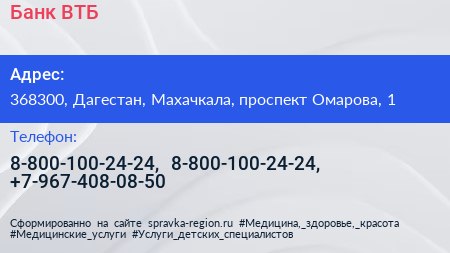 Банк ВТБ по адресу 368300, Дагестан, Махачкала, проспект Омарова, 1 в дальнейшем Организация, размещена в следующих категориях: