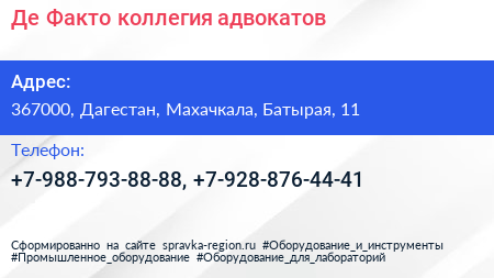 Де-Факто, коллегия адвокатов по адресу 367000, Дагестан, Махачкала, Батырая, 11 в дальнейшем Организация, размещена в следующих категориях: