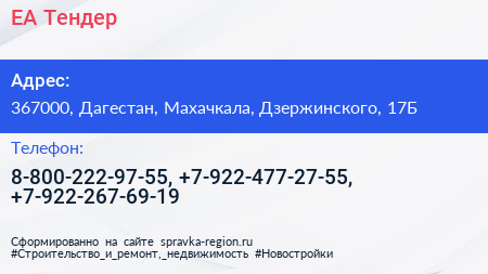 ЕА Тендер по адресу 367000, Дагестан, Махачкала, Дзержинского, 17Б в дальнейшем Организация, размещена в следующих категориях: