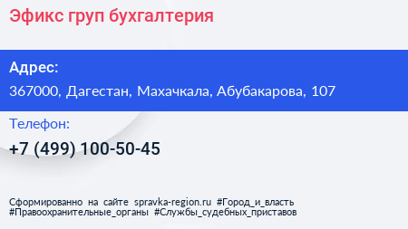 Эфикс-груп, бухгалтерия по адресу 367000, Дагестан, Махачкала, Абубакарова, 107 в дальнейшем Организация, размещена в следующих категориях:
