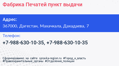Фабрика Печатей, пункт выдачи по адресу 367000, Дагестан, Махачкала, Дахадаева, 7 в дальнейшем Организация, размещена в следующих категориях: