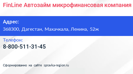 FinLine-Автозайм, микрофинансовая компания по адресу 368300, Дагестан, Махачкала, Ленина, 52ж в дальнейшем Организация, размещена в следующих категориях: