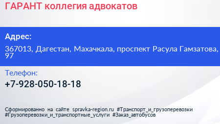 ГАРАНТ, коллегия адвокатов по адресу 367013, Дагестан, Махачкала, проспект Расула Гамзатова, 97 в дальнейшем Организация, размещена в следующих категориях: