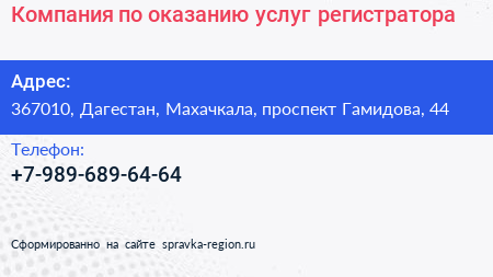 Компания по оказанию услуг регистратора по адресу 367010, Дагестан, Махачкала, проспект Гамидова, 44 в дальнейшем Организация, размещена в следующих категориях: