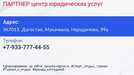 ПАРТНЕР, центр юридических услуг по адресу 367013, Дагестан, Махачкала, Нурадилова, 99а в дальнейшем Организация, размещена в следующих категориях: