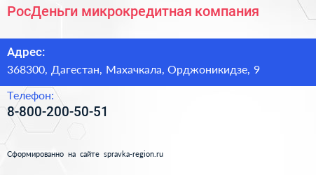 РосДеньги, микрокредитная компания по адресу 368300, Дагестан, Махачкала, Орджоникидзе, 9 в дальнейшем Организация, размещена в следующих категориях: