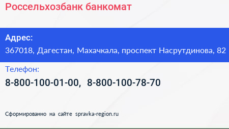 Россельхозбанк, банкомат по адресу 367018, Дагестан, Махачкала, проспект Насрутдинова, 82 в дальнейшем Организация, размещена в следующих категориях: