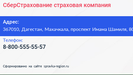 СберСтрахование, страховая компания по адресу 367010, Дагестан, Махачкала, проспект Имама Шамиля, 80 в дальнейшем Организация, размещена в следующих категориях:
