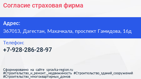 Согласие, страховая фирма по адресу 367013, Дагестан, Махачкала, проспект Гамидова, 16д в дальнейшем Организация, размещена в следующих категориях: