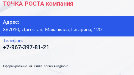 ТОЧКА РОСТА, компания по адресу 367010, Дагестан, Махачкала, Гагарина, 120 в дальнейшем Организация, размещена в следующих категориях: