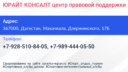 ЮРАЙТ-КОНСАЛТ, центр правовой поддержки по адресу 367000, Дагестан, Махачкала, Дзержинского, 17Б в дальнейшем Организация, размещена в следующих категориях: