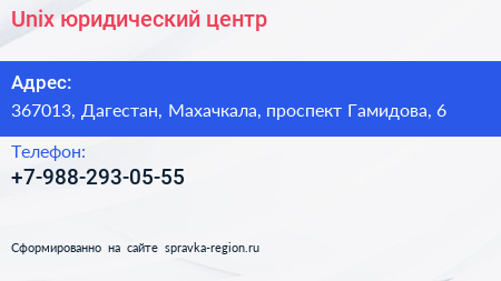 Unix, юридический центр по адресу 367013, Дагестан, Махачкала, проспект Гамидова, 6 в дальнейшем Организация, размещена в следующих категориях: