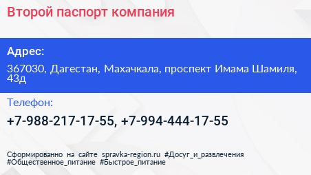 Второй паспорт, компания по адресу 367030, Дагестан, Махачкала, проспект Имама Шамиля, 43д в дальнейшем Организация, размещена в следующих категориях: