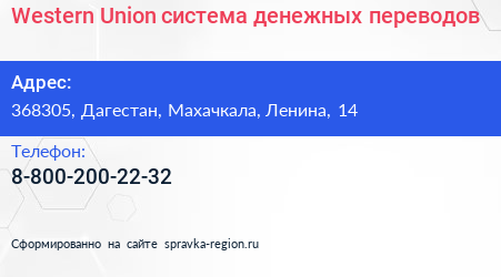 Western Union, система денежных переводов по адресу 368305, Дагестан, Махачкала, Ленина, 14 в дальнейшем Организация, размещена в следующих категориях: