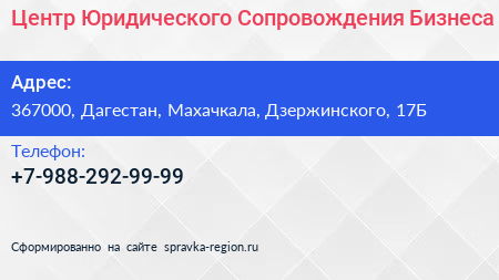 Центр Юридического Сопровождения Бизнеса по адресу 367000, Дагестан, Махачкала, Дзержинского, 17Б в дальнейшем Организация, размещена в следующих категориях: