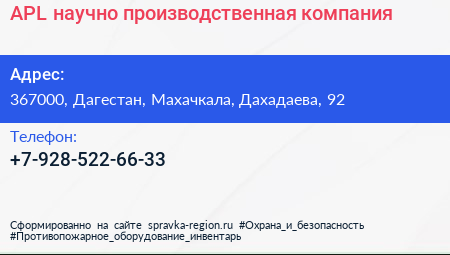 APL, научно производственная компания по адресу 367000, Дагестан, Махачкала, Дахадаева, 92 в дальнейшем Организация, размещена в следующих категориях: