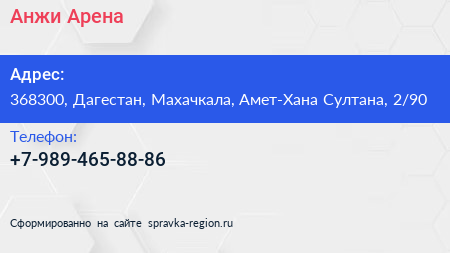 Анжи Арена по адресу 368300, Дагестан, Махачкала, Амет-Хана Султана, 2/90 в дальнейшем Организация, размещена в следующих категориях: