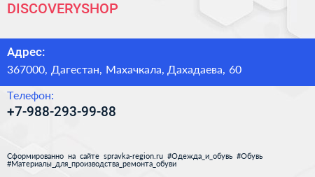 DISCOVERYSHOP по адресу 367000, Дагестан, Махачкала, Дахадаева, 60 в дальнейшем Организация, размещена в следующих категориях: