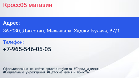 Кросс05, магазин по адресу 367030, Дагестан, Махачкала, Хаджи Булача, 97/1 в дальнейшем Организация, размещена в следующих категориях:
