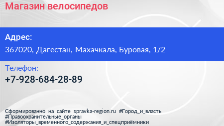 Магазин велосипедов по адресу 367020, Дагестан, Махачкала, Буровая, 1/2 в дальнейшем Организация, размещена в следующих категориях: