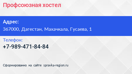 Профсоюзная, хостел по адресу 367000, Дагестан, Махачкала, Гусаева, 1 в дальнейшем Организация, размещена в следующих категориях: