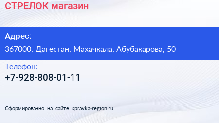 СТРЕЛОК, магазин по адресу 367000, Дагестан, Махачкала, Абубакарова, 50 в дальнейшем Организация, размещена в следующих категориях: