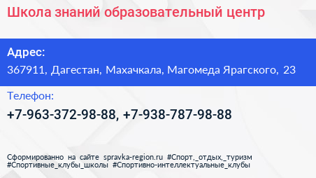 Школа знаний, образовательный центр по адресу 367911, Дагестан, Махачкала, Магомеда Ярагского, 23 в дальнейшем Организация, размещена в следующих категориях: