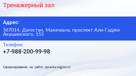 Тренажерный зал по адресу 367014, Дагестан, Махачкала, проспект Али-Гаджи Акушинского, 155 в дальнейшем Организация, размещена в следующих категориях: