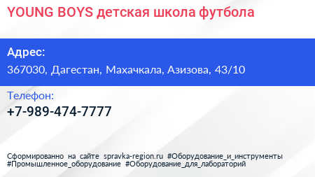YOUNG BOYS, детская школа футбола по адресу 367030, Дагестан, Махачкала, Азизова, 43/10 в дальнейшем Организация, размещена в следующих категориях: