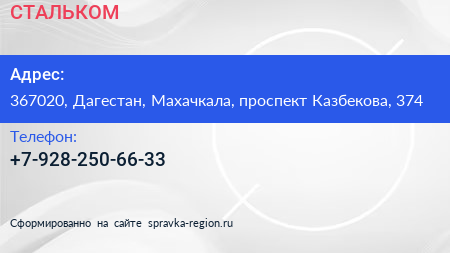 СТАЛЬКОМ по адресу 367020, Дагестан, Махачкала, проспект Казбекова, 374 в дальнейшем Организация, размещена в следующих категориях: