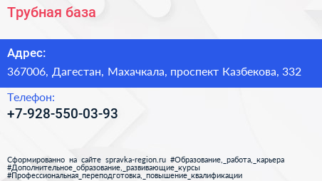 Трубная база по адресу 367006, Дагестан, Махачкала, проспект Казбекова, 332 в дальнейшем Организация, размещена в следующих категориях: