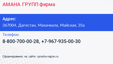 АМАНА ГРУПП, фирма по адресу 367004, Дагестан, Махачкала, Майская, 35а в дальнейшем Организация, размещена в следующих категориях: