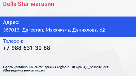 Bella Star, магазин по адресу 367013, Дагестан, Махачкала, Даниялова, 62 в дальнейшем Организация, размещена в следующих категориях: