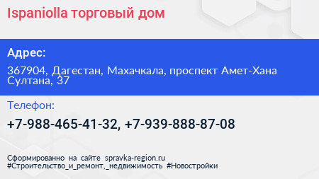 Ispaniolla, торговый дом по адресу 367904, Дагестан, Махачкала, проспект Амет-Хана Султана, 37 в дальнейшем Организация, размещена в следующих категориях: