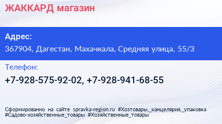 ЖАККАРД, магазин по адресу 367904, Дагестан, Махачкала, Средняя улица, 55/3 в дальнейшем Организация, размещена в следующих категориях: