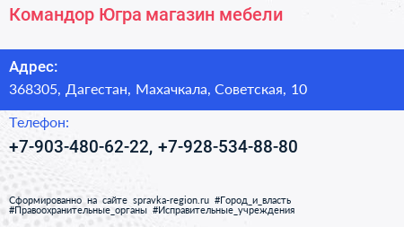 Командор-Югра, магазин мебели по адресу 368305, Дагестан, Махачкала, Советская, 10 в дальнейшем Организация, размещена в следующих категориях: