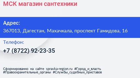 МСК, магазин сантехники по адресу 367013, Дагестан, Махачкала, проспект Гамидова, 16 в дальнейшем Организация, размещена в следующих категориях:
