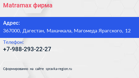 Matramax, фирма по адресу 367000, Дагестан, Махачкала, Магомеда Ярагского, 12 в дальнейшем Организация, размещена в следующих категориях: