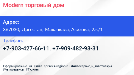 Modern, торговый дом по адресу 367030, Дагестан, Махачкала, Азизова, 2ж/1 в дальнейшем Организация, размещена в следующих категориях: