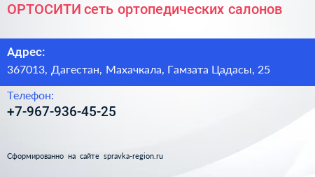 ОРТОСИТИ, сеть ортопедических салонов по адресу 367013, Дагестан, Махачкала, Гамзата Цадасы, 25 в дальнейшем Организация, размещена в следующих категориях: