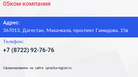 05ком, компания по адресу 367013, Дагестан, Махачкала, проспект Гамидова, 15в в дальнейшем Организация, размещена в следующих категориях: