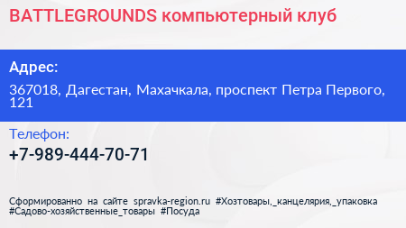 BATTLEGROUNDS, компьютерный клуб по адресу 367018, Дагестан, Махачкала, проспект Петра Первого, 121 в дальнейшем Организация, размещена в следующих категориях: