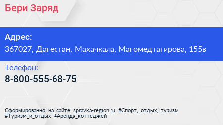 Бери Заряд по адресу 367027, Дагестан, Махачкала, Магомедтагирова, 155в в дальнейшем Организация, размещена в следующих категориях: