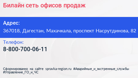 Билайн, сеть офисов продаж по адресу 367018, Дагестан, Махачкала, проспект Насрутдинова, 82 в дальнейшем Организация, размещена в следующих категориях: