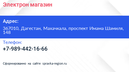 Электрон, магазин по адресу 367010, Дагестан, Махачкала, проспект Имама Шамиля, 148 в дальнейшем Организация, размещена в следующих категориях: