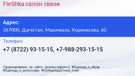 FleShka, салон связи по адресу 367000, Дагестан, Махачкала, Коркмасова, 60 в дальнейшем Организация, размещена в следующих категориях: