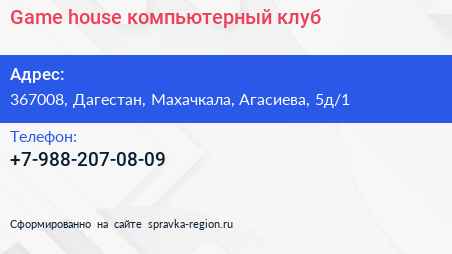 Game house, компьютерный клуб по адресу 367008, Дагестан, Махачкала, Агасиева, 5д/1 в дальнейшем Организация, размещена в следующих категориях:
