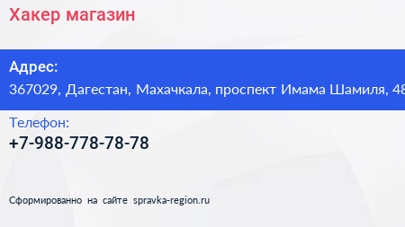 Хакер, магазин по адресу 367029, Дагестан, Махачкала, проспект Имама Шамиля, 48 в дальнейшем Организация, размещена в следующих категориях: