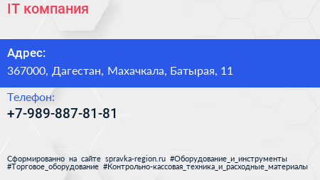 IT-компания по адресу 367000, Дагестан, Махачкала, Батырая, 11 в дальнейшем Организация, размещена в следующих категориях: